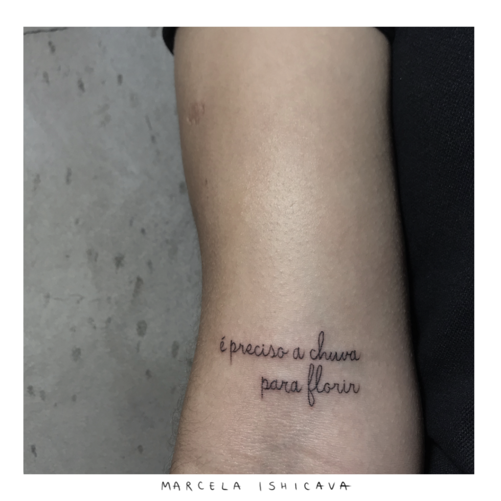 Conta mais Marcela: “Sempre tive uma ligação muito forte com vários tipos de arte, e aos dezoito anos, me encontrei como tatuadora. Hoje, com sete anos de carreira, foco em tatuagens minimalistas de linhas finas e delicadas. Escritas, animais e botânica são as mais requisitadas. Música e artistas como Matisse e Frida Kahlo me inspiram para criar e mostrar minha arte para o mundo.“