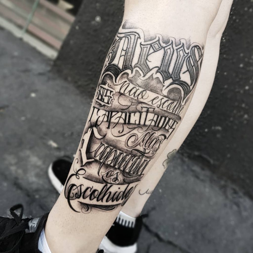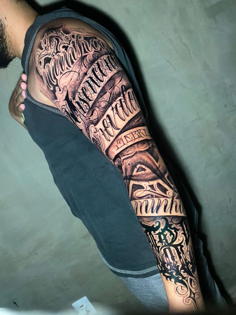 Vamos conhecer agora o Max: “Meu nome é Maximiliano conhecido como INKMAXTATTOO, sou tatuador a 6 anos. Nunca tive meu pai presente mas eu sabia que ele era tatuador, então foi daí a ideia de querer tatuar. Caligrafia sempre foi difícil pra mim treinei muito até criar meu estilo. Treinar bastante e ter paciência.” Uau, ele arrasa: