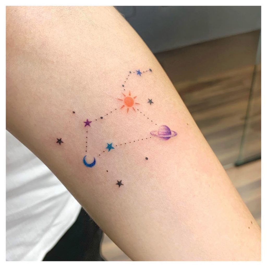 E como a tatuagem costuma incorporar tudo aquilo que faz parte da personalidade do indivíduo, não demorou muito até surgirem as tatuagens inspiradas nos signos. E elas surgem de muitas formas diferentes, podem ser representadas pelas constelações de cada signo, pelo elemento ou pelo símbolo.