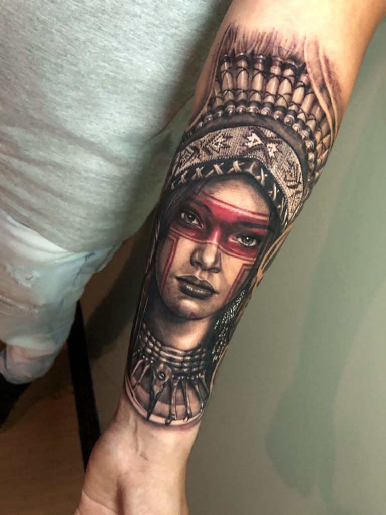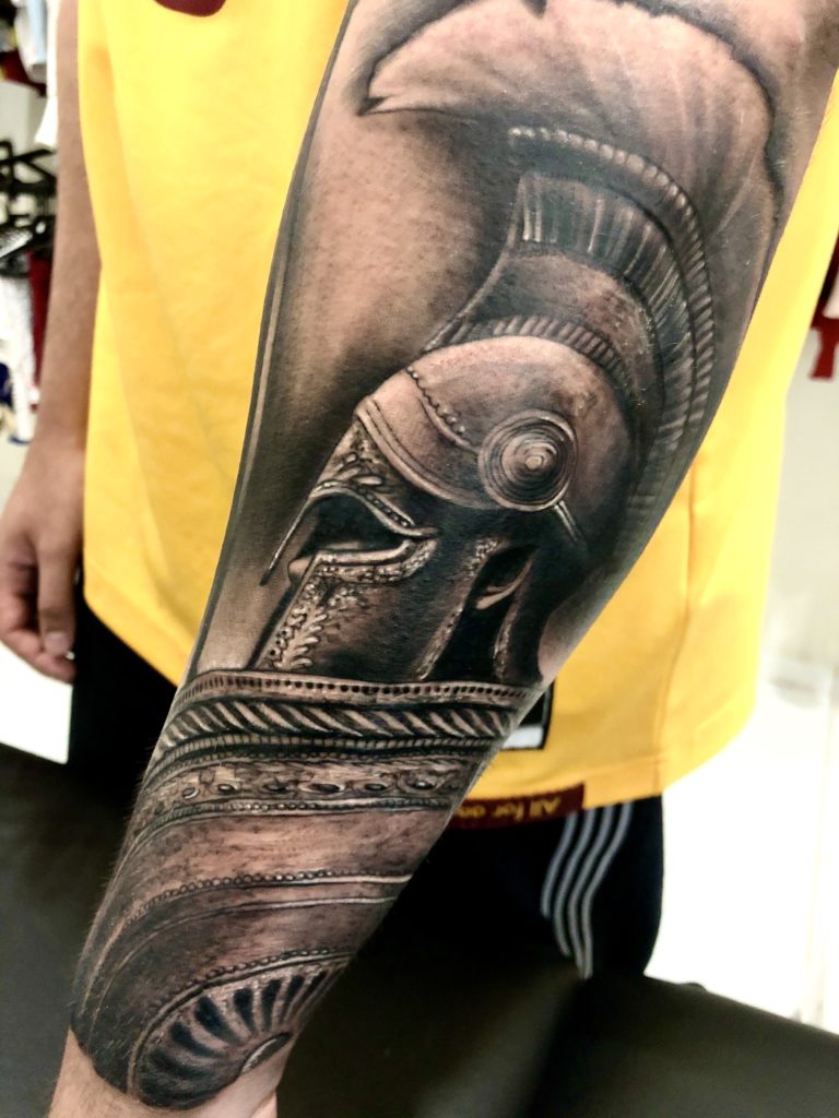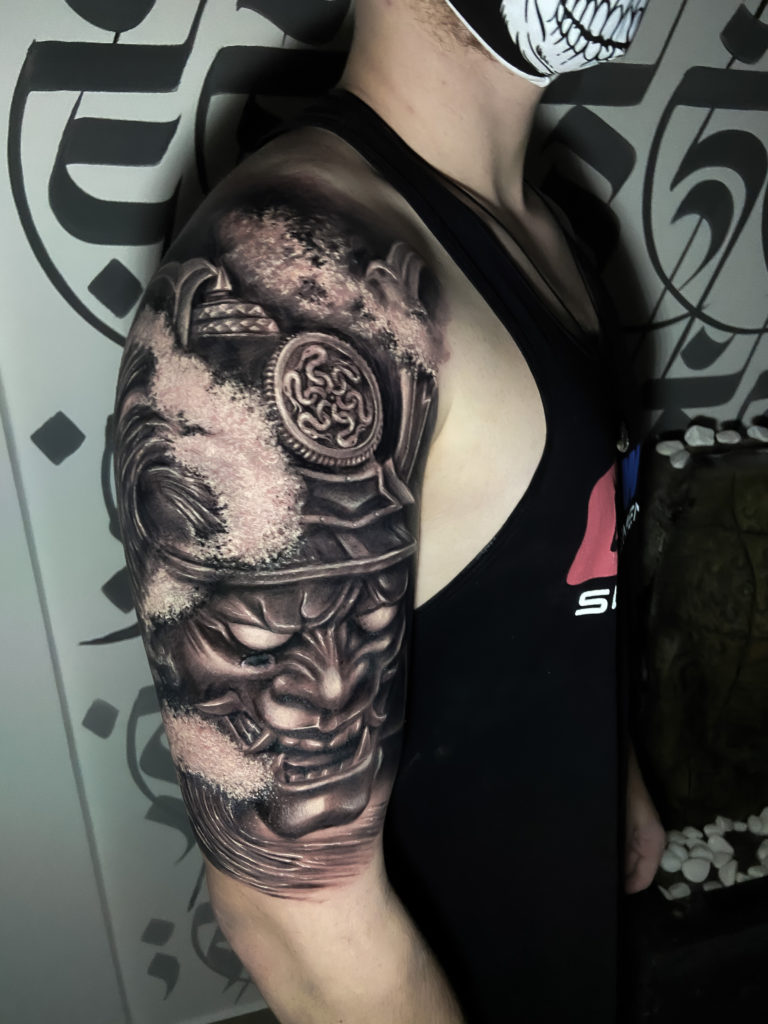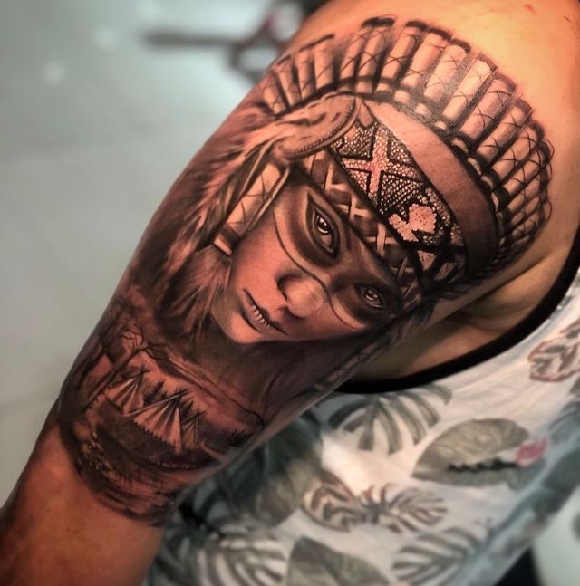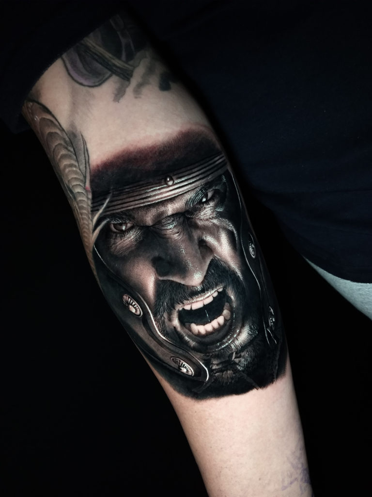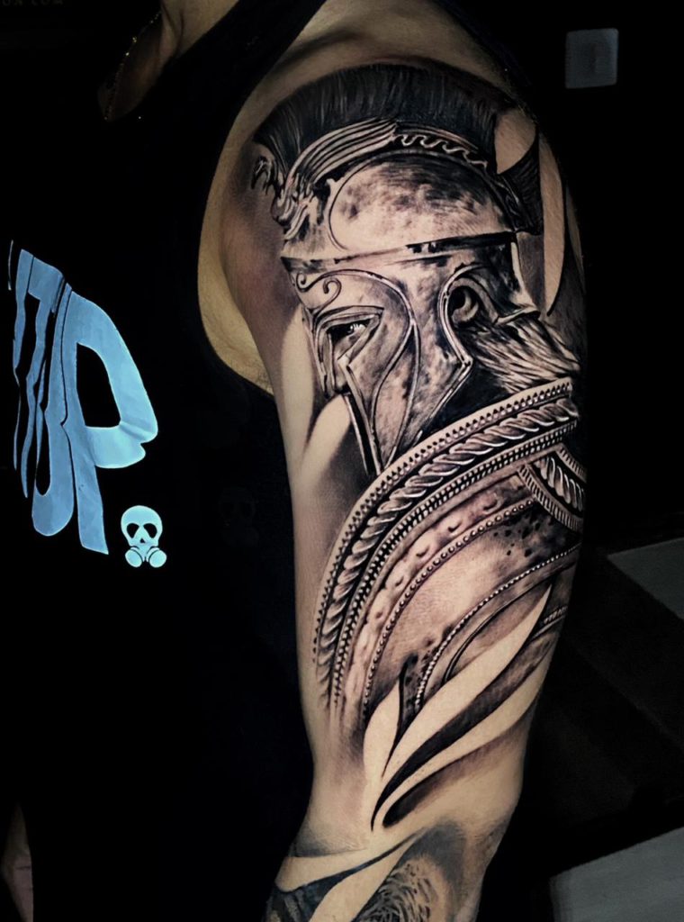 “Sempre gostei de arte, seja música, desenhos, danças, e filmes. Já fiz muitas coisas inclusive voltada para música, mas no desenho e tatuagem foi onde mais me encontrei, comecei com meus 17 anos, e hoje tenho 5 anos da caminhada no mundo da tatuagem. Trabalho atualmente com o realismo preto e cinza e portrait. Tenho várias referenciais, mas hoje, especificamente tenho como base o Samurai Standof.”