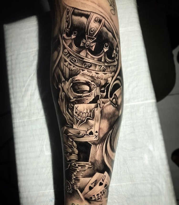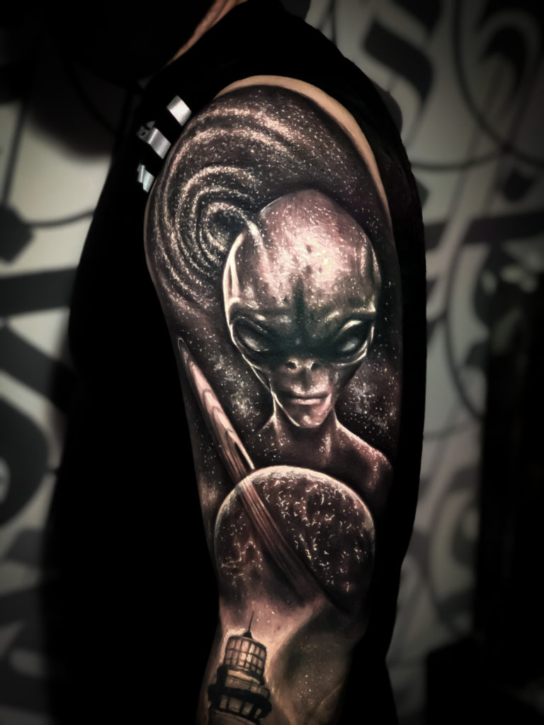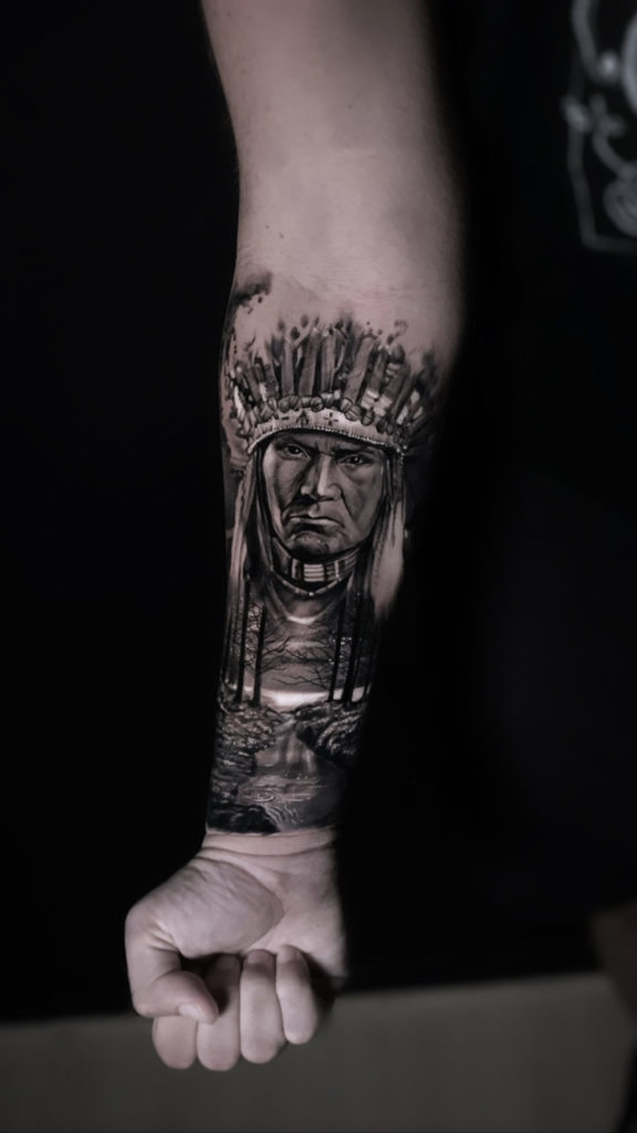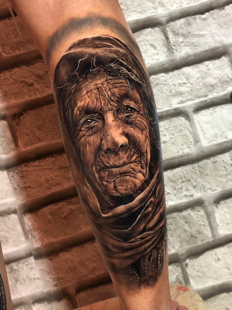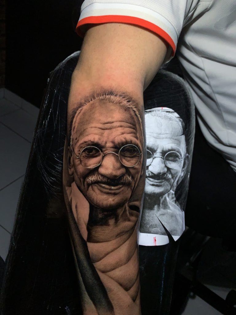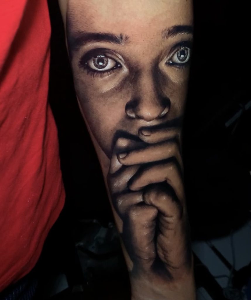 “A arte esteve comigo a vida toda, desde os 7 anos. Era confeiteiro antes de tatuador, tive que abandonar a profissão na época por conta de saúde. Conheci a tatuagem através de um amigo que começou a tatuar e como eu era muito próximo dele, acabei entrando para a área também. Faz 6 anos que estou tatuando, hoje em dia trabalho com os estilos realismo preto e cinza e reprodução de fotos (portrait). Minhas maiores inspirações são os artistas internacionais como David Vega, Ralf Nonnweiler, entre outros.”