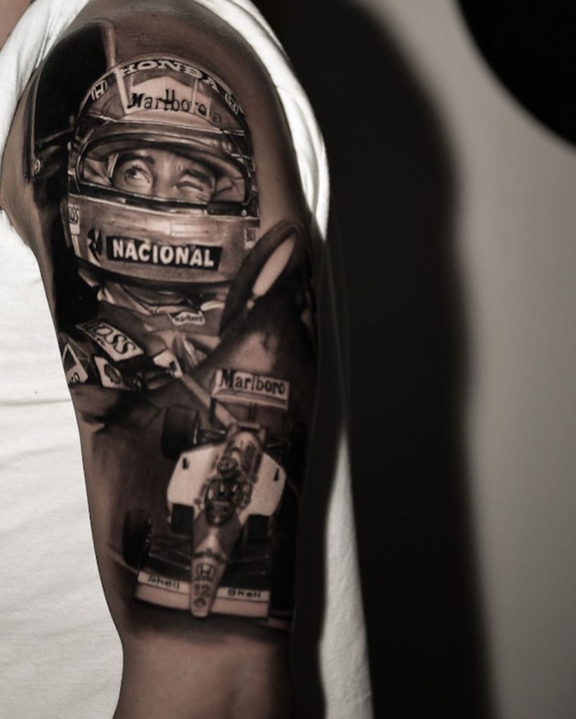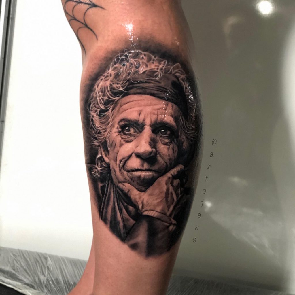 - Você irá ver tatuagens preto e cinza de personagens famosos de filmes e da música.