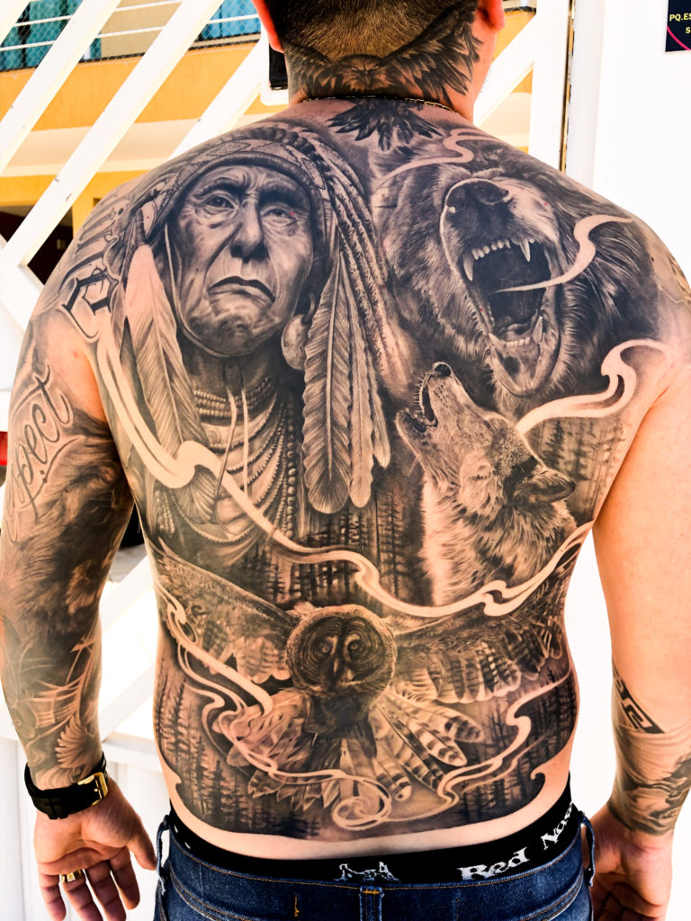 “Comecei a tatuar em 2003 e sempre admirei o trabalho de Cigano Aguillera e de Mordenti, dois nomes da tattoo nacional. Meus trabalhos de oriental se destacam bastante, mas fiquei realmente conhecido por causa dos meus realismos, que passaram a ganhar notoriedade até fora do meio da tatuagem.”