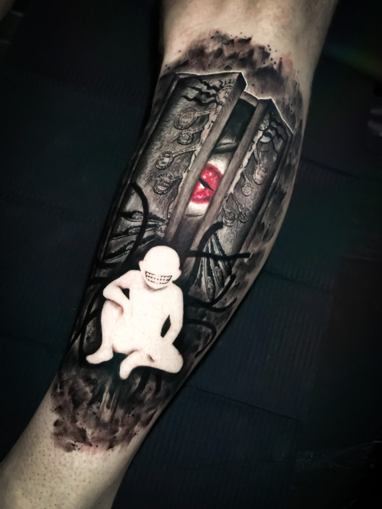 Gosto de mesclar estilos, misturo preto e cinza com técnicas de pintura a óleo e aquarela, foco sempre em tatuar temas diferenciados do comum, com ênfase em anime, filmes e animais.”