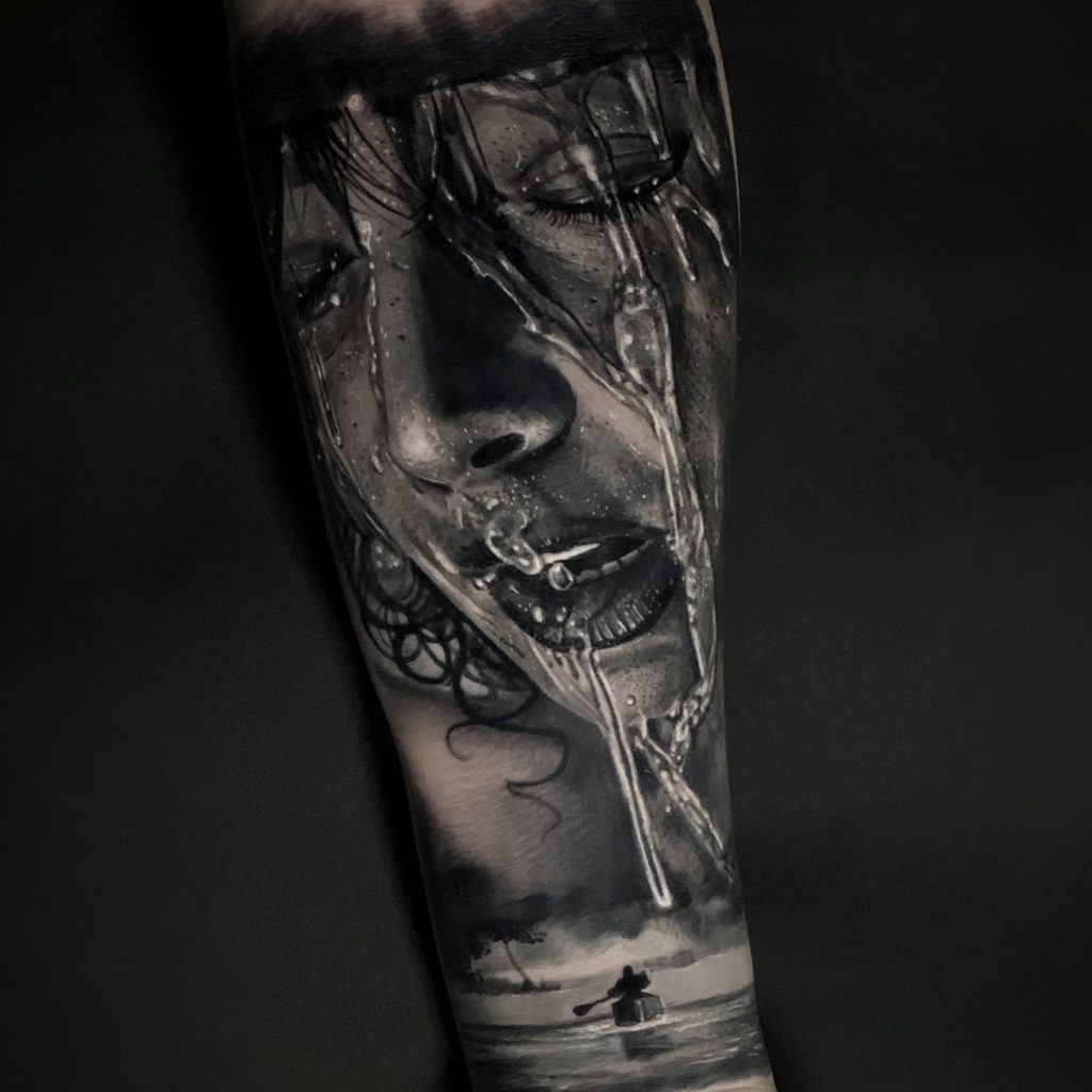 Você ficará em choque com algumas artes de tatuagens no estilo preto e cinza que conseguem retratar tecidos, água, suor e até saliva de tão real!