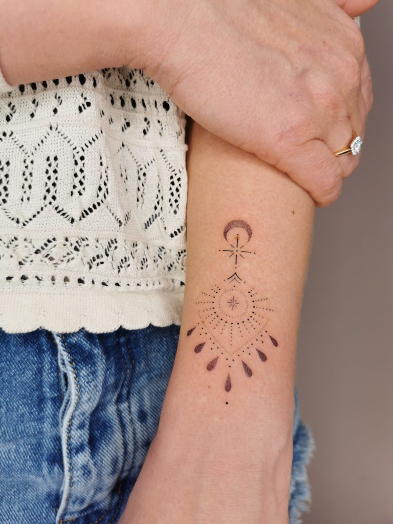 Tati vem para o Brasil, mas você pode tatuar com ela em Barcelona: “Desde pequena já sabia que queria ser tatuadora. Ao me mudar para Barcelona me tornei profissional nessa área. Sou tatuadora profissional há 7 anos. Me inspiro nos movimentos femininos do corpo da mulher, assim como toda sua energia e misticismo. No meu trabalho utilizo flores e delicados ornamentos. Me inspiro muito na cultura japonesa, berberes, além de símbolos alquímicos. Em janeiro de 2021 estarei tatuando no Brasil.” O que você achou da tatuagem ornamental que a Tati faz?