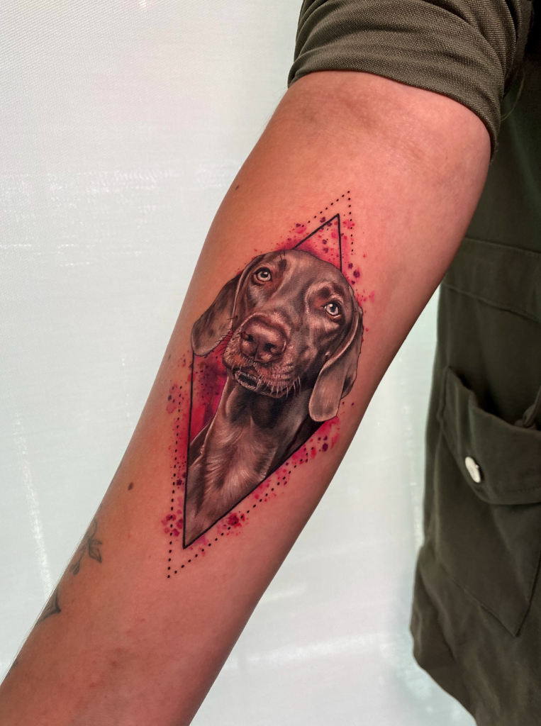Karime Ferran é uma tatuadora brasileira de Porto Alegre especializada em realismo preto e cinza e blackwork. Com mais de uma década de experiência no ramo, ela tem criado obras de arte únicas e autorais que encantam clientes e admiradores. O amor de Karime por pets e tatuagens em realismo se tornou evidente quando ela preparou, de última hora, um projeto em homenagem a uma doguinha. O resultado foi o mais lindo trabalho de sua carreira, que foi compartilhado em redes sociais e quebrou recordes de curtidas. Desde então, esse estilo tornou-se o nicho de paixão de Karime.
