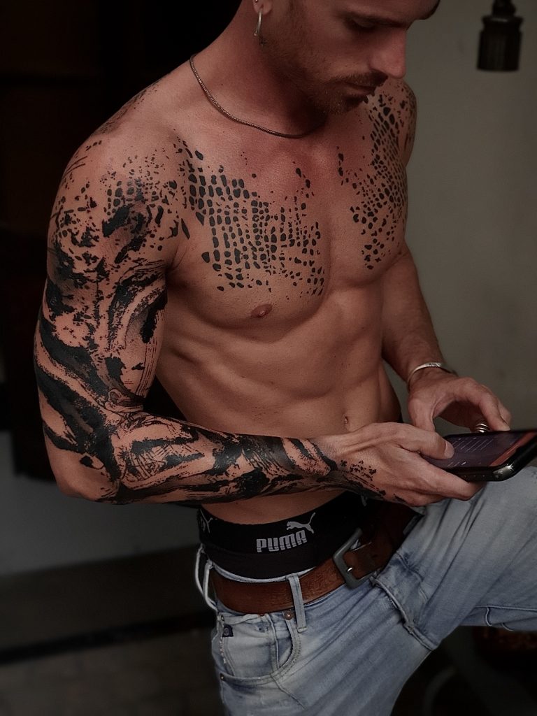 Bernardo Lacerda é um artista do Rio de Janeiro que valoriza profundamente o cuidado e a escuta para com seus clientes, traduzindo seus sentimentos em arte. Suas tatuagens abstratas são verdadeiras obras de arte, tocando o coração de quem as recebe. Bernardo se dedica a criar peças que representam significados especiais e momentos importantes na vida de seus clientes, proporcionando uma experiência de transformação e conexão emocional.