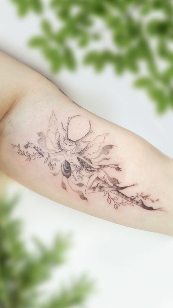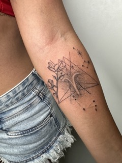 Fe Viana é uma artista que brilha através de seu atendimento atento e acolhedor, aliado a sua habilidade técnica em criar traços finos e sombras delicadas. Seu diferencial é a profunda empatia que traz para cada sessão, refletindo um compromisso genuíno com a essência e a história de cada cliente. Fe utiliza a tatuagem para marcar momentos significativos na vida das pessoas, fortalecendo memórias e reconstruindo autoestima com suas criações únicas e significativas.