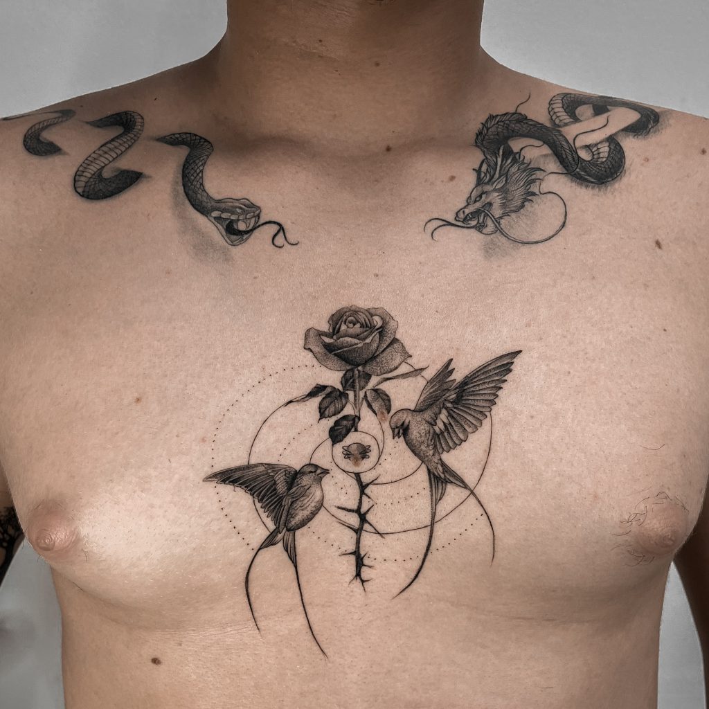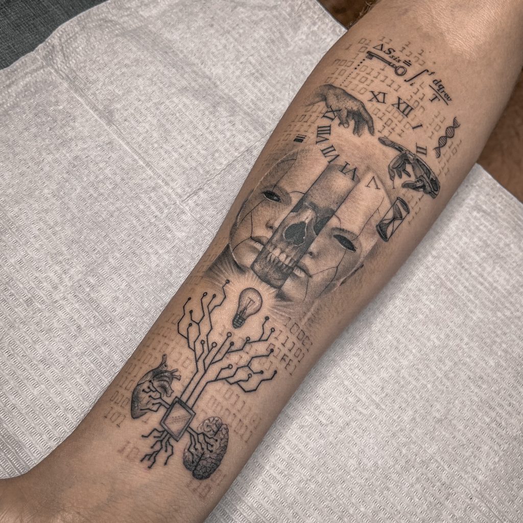Bernard Klein transforma dores em formas e memórias em cores, trazendo um olhar artístico profundo e emocional para suas tatuagens. Com um bacharelado em Artes Visuais pela UERJ e dois prêmios de primeiro lugar na Tattoo Week, Bernard é um artista renomado que se dedica a criar peças que são verdadeiras expressões de arte e significado.