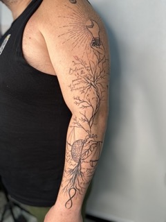 Mih Chiarelli sente que suas artes são portais que surgem através de conexões profundas com o universo. Suas tatuagens são canais de acesso interior, carregadas de ativações e reflexões sobre a vida. Mih se dedica a criar peças que não apenas decoram a pele, mas também conectam seus clientes com suas próprias essências e questionamentos sobre a existência.