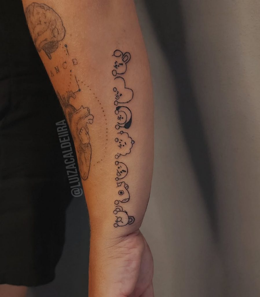 Tatuagens inspiradas no K-pop refletem a paixão e a dedicação dos fãs pela música, pelos grupos e pela cultura desse fenômeno global. Essas tatuagens podem representar uma variedade de elementos do mundo K-pop, como nomes de grupos, álbuns, letras de músicas ou até símbolos dos fandoms. Para muitos, essas tatuagens não são apenas uma forma de expressar a admiração pelos artistas, mas também de conectar suas próprias histórias pessoais com as mensagens de empoderamento, crescimento e positividade frequentemente presentes no K-pop.