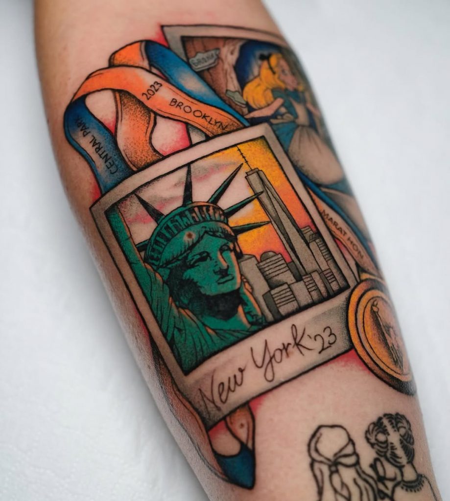 Transformar memórias em tatuagens nunca sai de moda, e o formato de polaroid dá um charme especial a essas artes. Esse estilo captura momentos específicos como se fossem uma fotografia eternizada na pele, com o design imitando o formato característico das fotos Polaroid. As tatuagens polaroid muitas vezes retratam cenas pessoais, paisagens, retratos ou memórias importantes para a pessoa, como se fosse uma fotografia registrada em forma de arte corporal. Esse estilo traz uma forte carga emocional e nostálgica, possibilitando que você guarde momentos especiais para sempre!