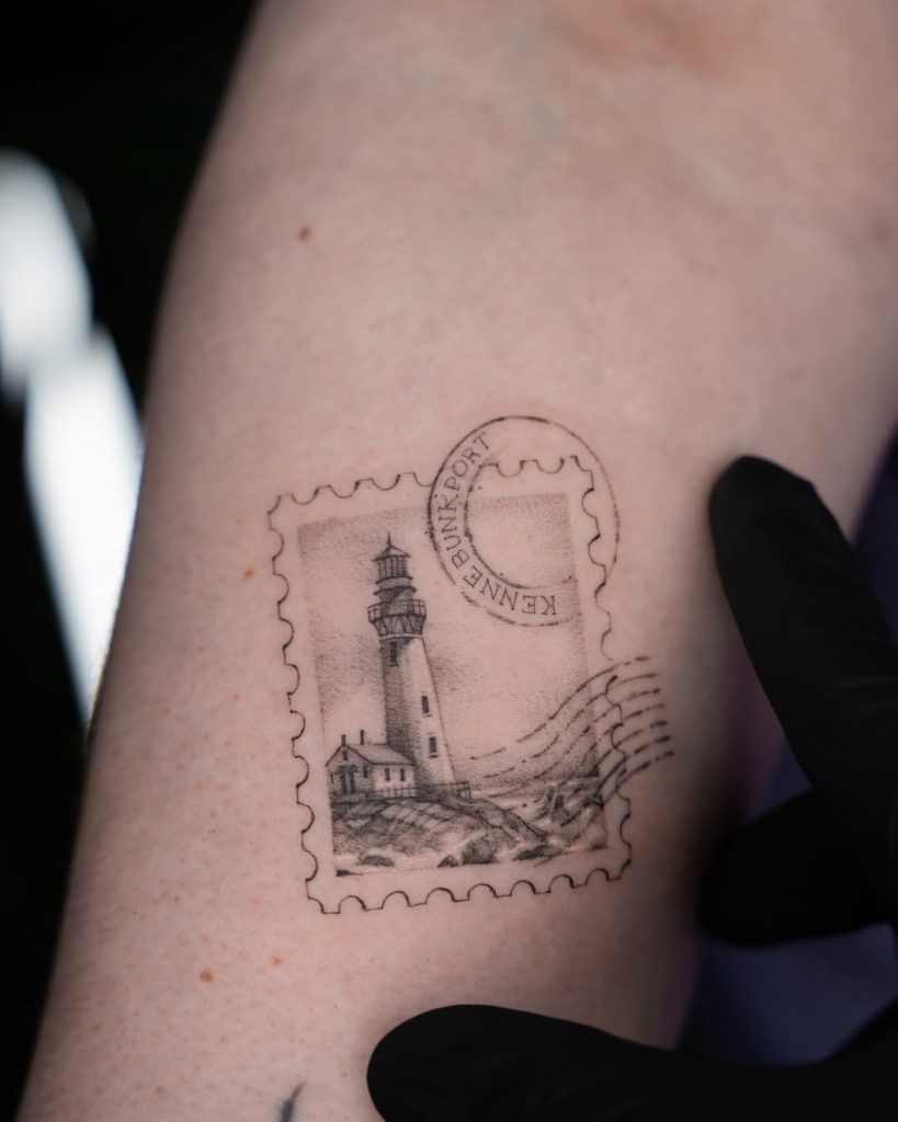 As tatuagens de selo de ponto turístico são inspiradas pelos carimbos e selos que os viajantes colecionam ao visitar lugares ao redor do mundo! Geralmente utilizam o visual que imita os carimbos de passaportes ou selos postais, transformando as memórias de viagens inesquecíveis em arte na pele. Esses projetos são muito versáteis, podendo ser minimalistas, com linhas simples e traços finos, mas também mais elaboradas, incorporando cores e detalhes artísticos que capturam o estilo de cada tatuador. A parte mais legal é que você pode adicionar mais tatuagens à medida que visita novos lugares, transformando sua pele em uma lembrança viva das suas aventuras pelo mundo.