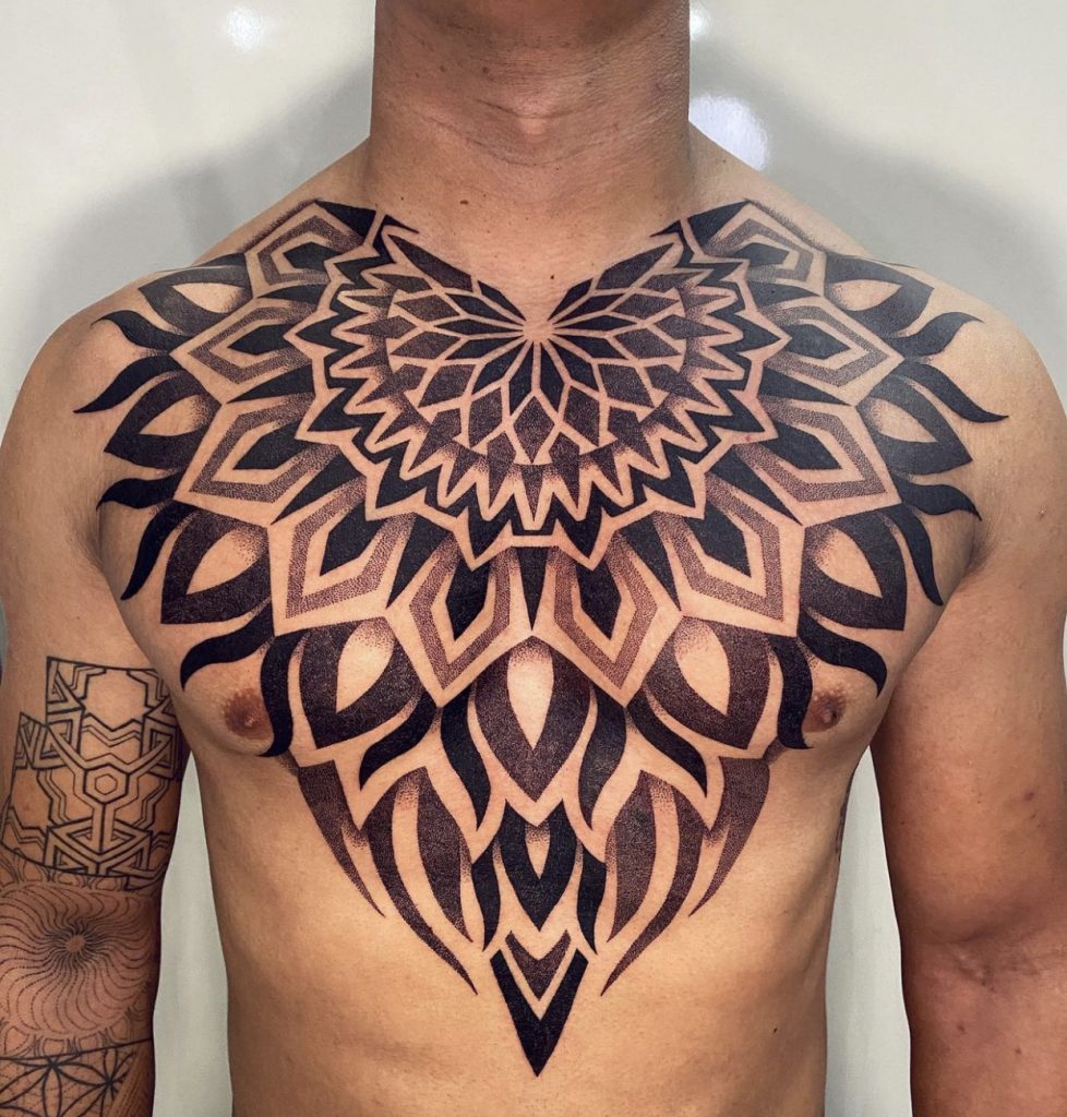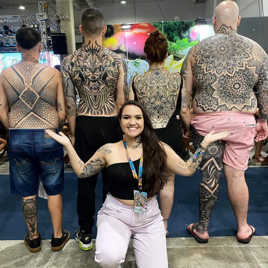 Especialista em pontilhismo geométrico, Thaysa também domina técnicas de line work e ornamental. Sua inspiração vem da geometria e dos pontos que fascinam, permitindo-lhe criar desenhos que são ao mesmo tempo precisos e cheios de significado. “Amo, vivo e respiro a tatuagem”, diz ela, destacando a paixão que alimenta sua constante evolução e dedicação.