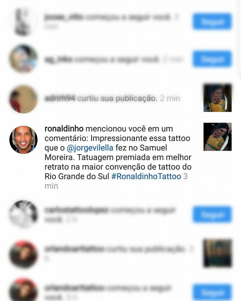 Tony recebeu elogios até do maior de jogador de futebol do Brasil por uma tatuagem que fez: Homenagem ao melhor jogador de futebol da história @ronaldinho Gaúcho: