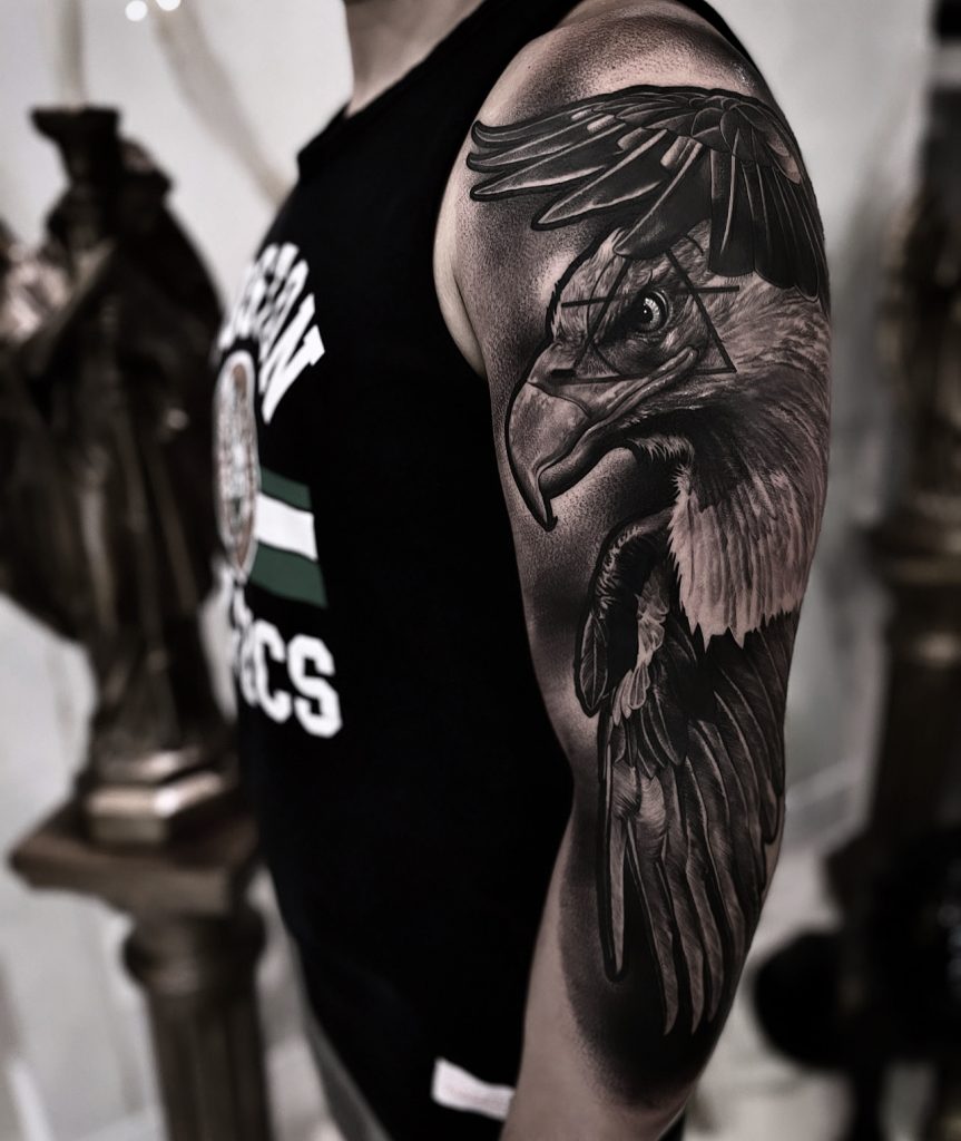 Em 2018, um ano depois no Tattooweek, eu estava lá no estande da Electric Ink sendo um artista patrocinado, e melhor, premiado na maior convenção de tatuagem do mundo! Fiquei em terceiro lugar na categoria mais concorrida do evento, black and gray, me recordo que haviam 320 artistas na fila desta categoria.