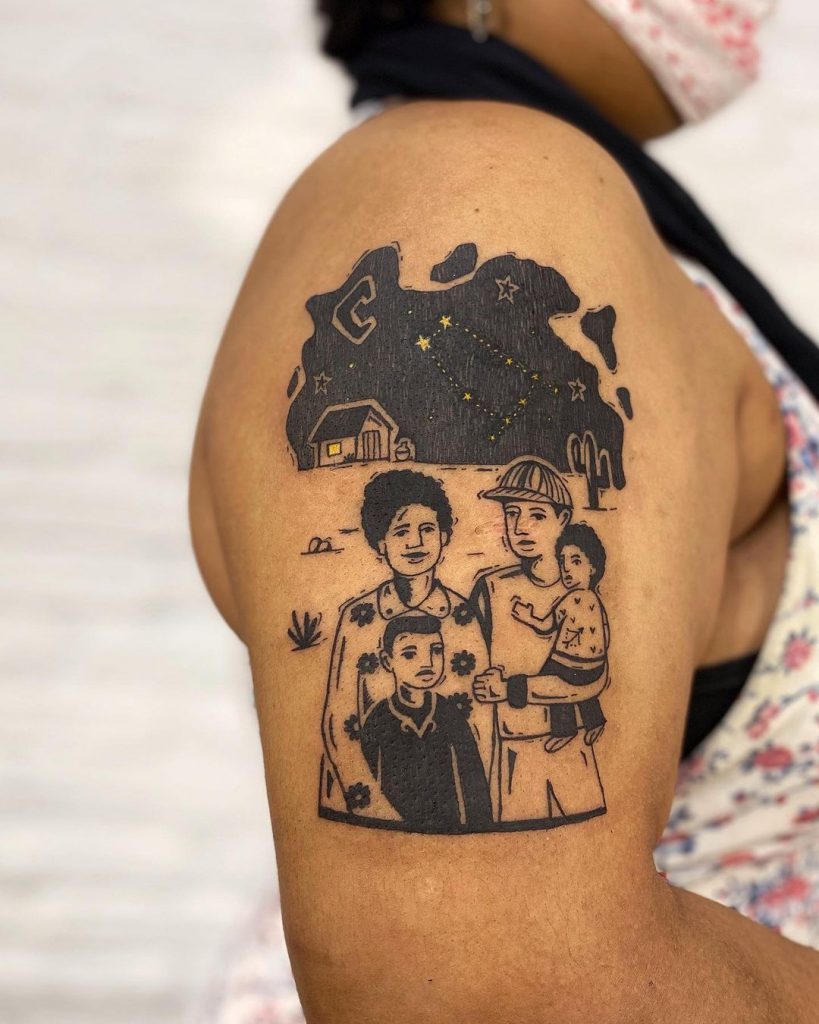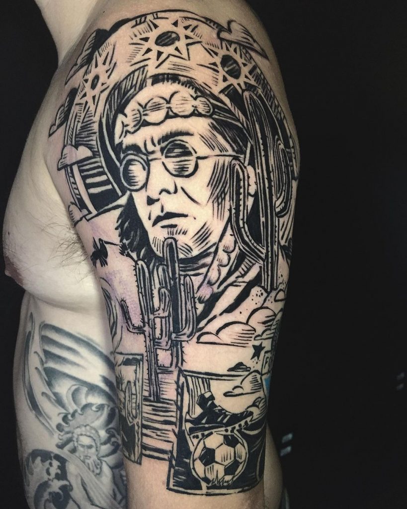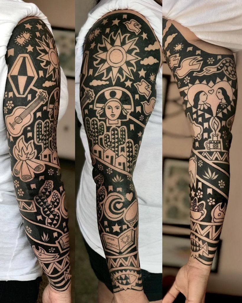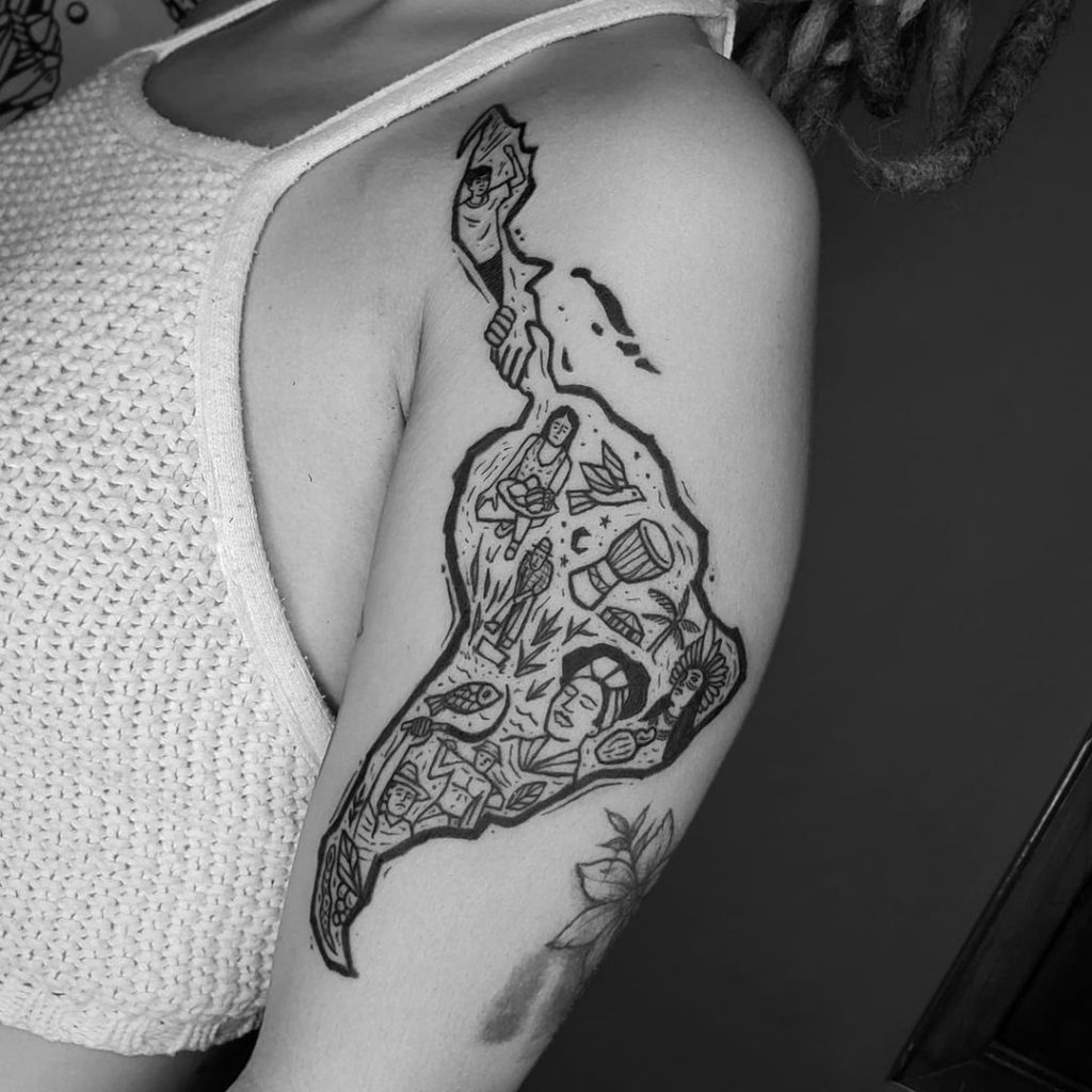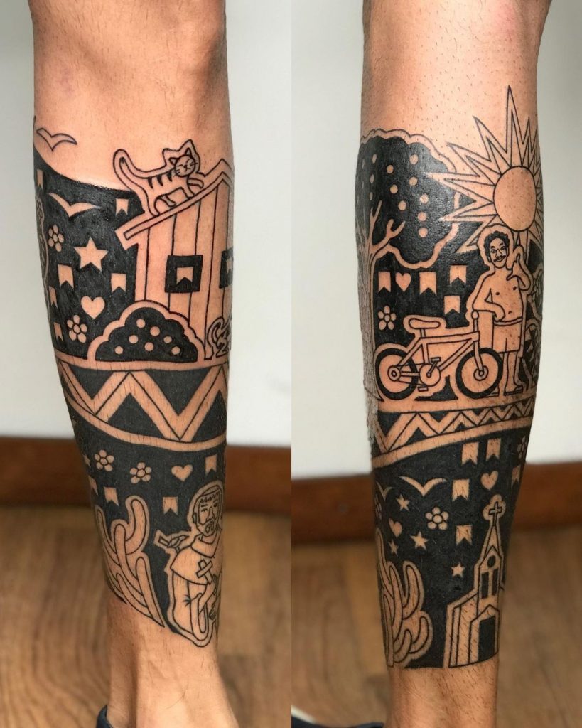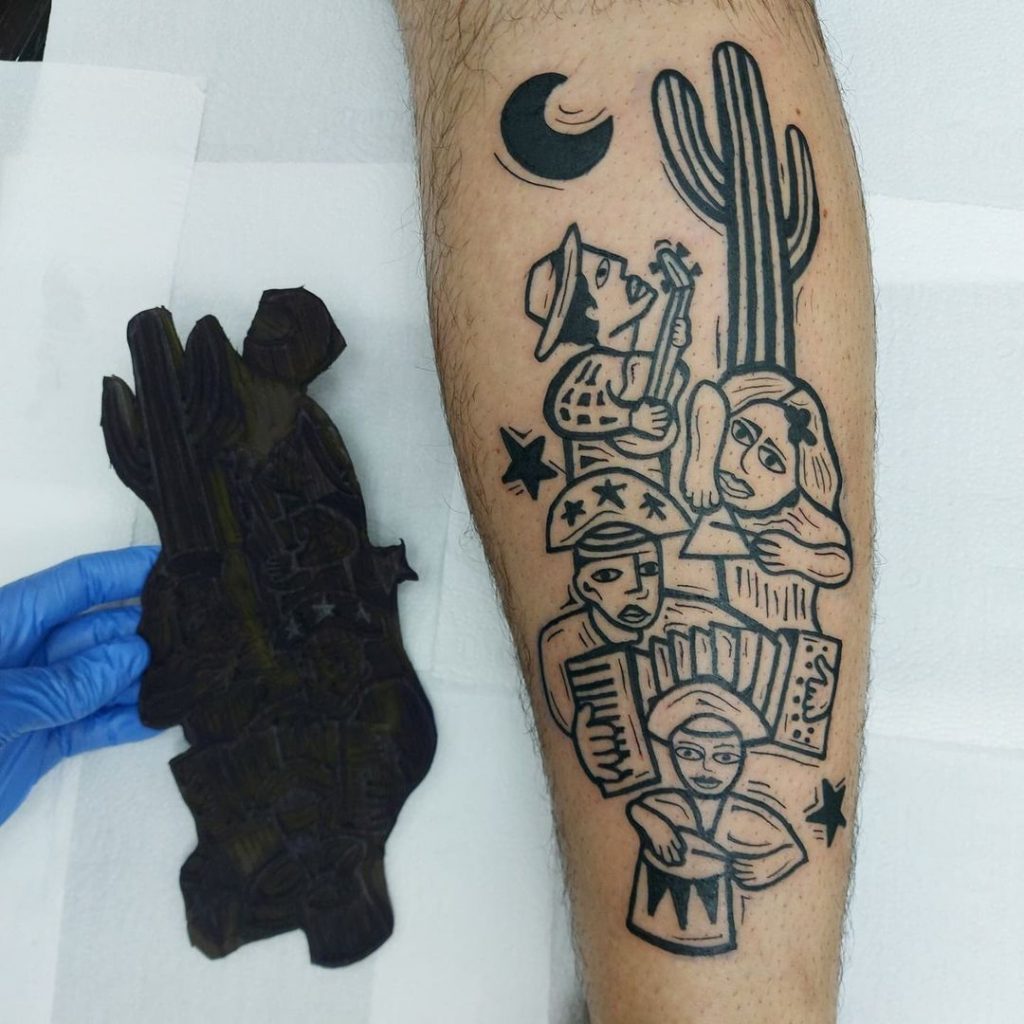 Com traços que imitam a Xilogravura tradicional, essas tatuagens são cheias de força e originalidade. Dentre as temáticas mais usadas são a cultura brasileira, cultura nordestina, e a contação de histórias, seguindo a inspiração dos cordéis.