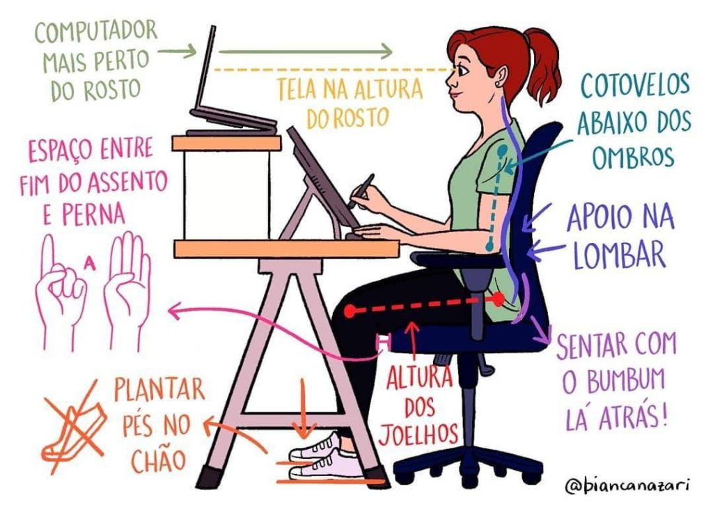 É essencial estar atento a sua postura ao trabalhar sentado, veja como se sentar corretamente para melhoras dores na coluna: